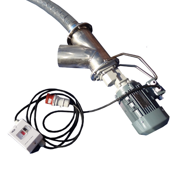 Die Förderanlage kann für alle rieselfähigen Schüttgüter verwendet werden. Das Gerät wird einfach oben am Bügel aufgehängt und unten in das Material gelegt.