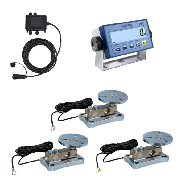 Schutzklasse IP68 • robuste Montageplatte zur Befestigung am Boden • bewegliche Lasteinleitung • bestehend aus 3 Modulen mit je 1.000 kg Nennlast für Wägeanwendungen bis ca. 2 t • Wasserdichte Wiegeanzeige (IP68) für den anspruchsvollen Einsatz in Landwirtschaft, Industrie und Gewerbe • Auflösung 0,5 kg
