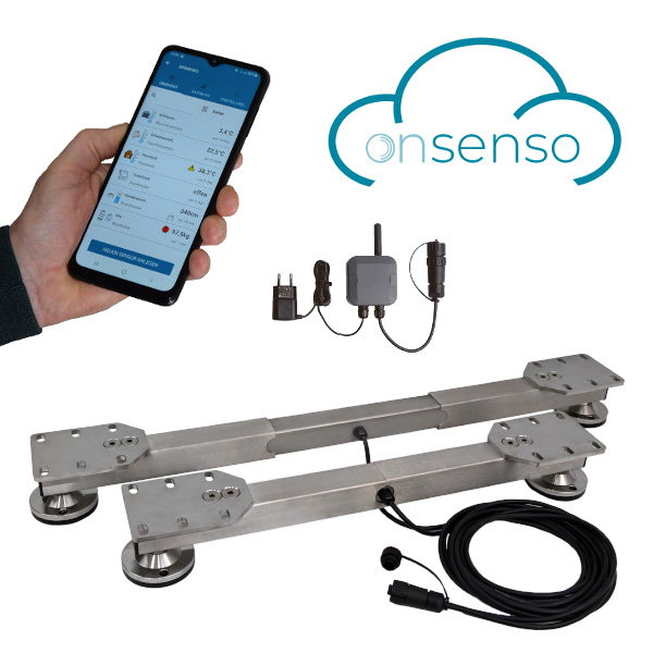 Statt einer Wiegeanzeige wird ein Onsenso Gewichts-Messumformer mit LoRa Modul verwendet. Die Gewichte werden über einen Gateway in die Onsenso Cloud übertragen. Die Einbindung in das Onsenso System erfolgt mit dem Handy oder dem Webportal. Falls Sie noch kein Onsenso System verwenden ist ein Gateway erforderlich, siehe www.onsenso.com.